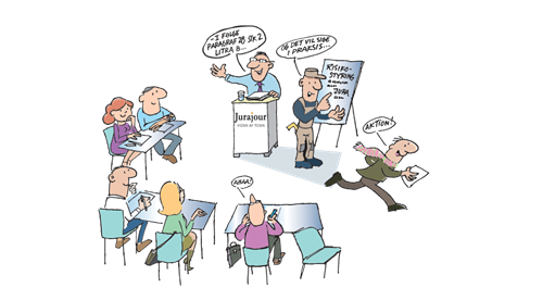 I visse tilfælde vil vi have flere undervisere på samme kursus for på bedste mulige måde at kombinere teori og praksis. Det giver en mere levende dialog på kurset, for vi ved at ensidige foredrag om juridiske problemstillinger kan være vanskelige at kapere.